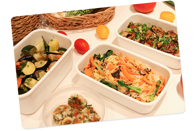 献立は当社でお作りします。冷蔵・冷凍保存しておきますので、あとは温めるだけ。